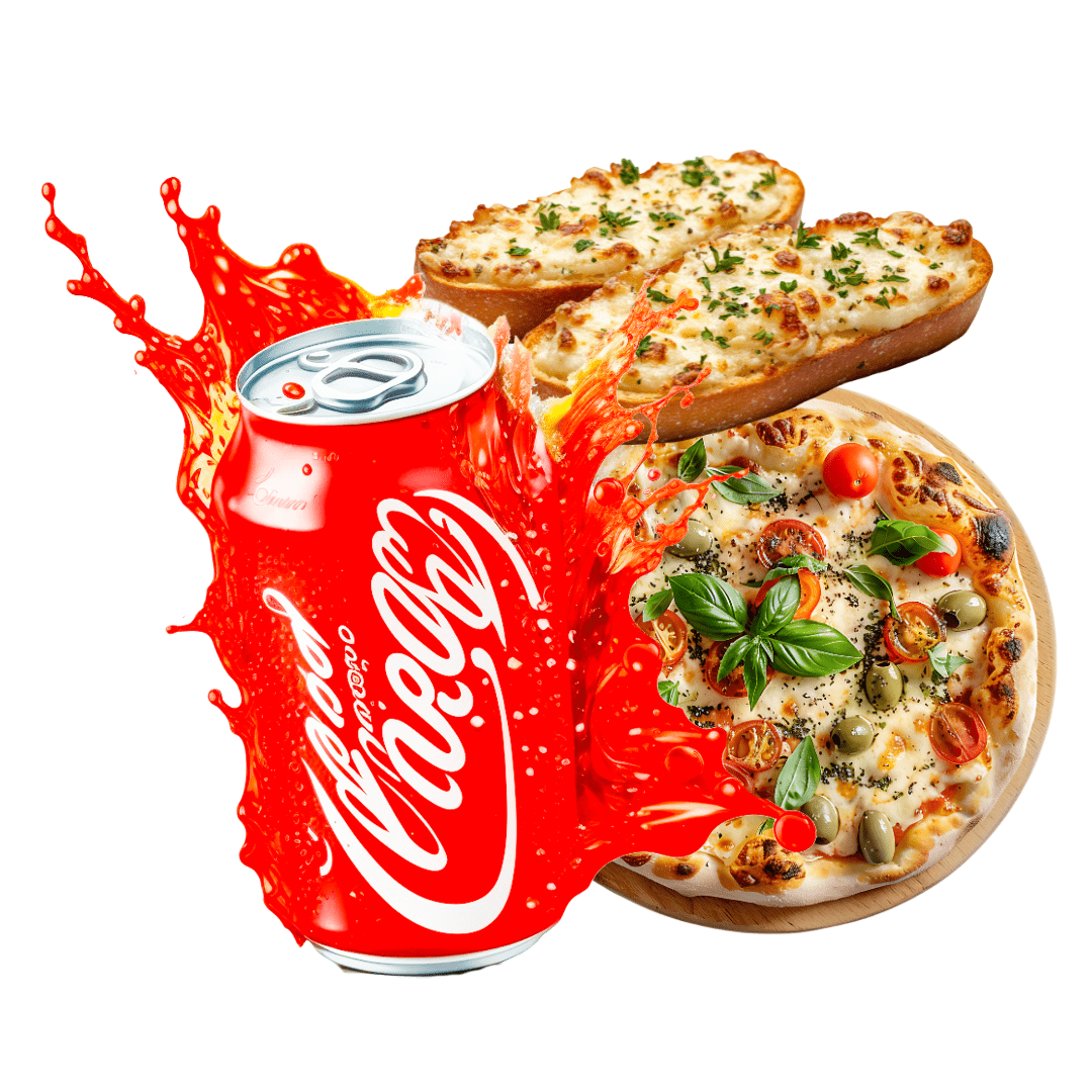 1 large pizza +garlic bread+ 1 can of drink.