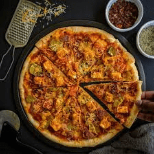 Napoli base, onion, roasted chicken, pineapple, capsicum, Mozzarella cheese, BBQ sauce