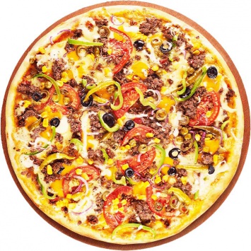 Napoli base, ham, onion, salami, capsicum, mushroom, sliced tomato, beef, mozzarella cheese